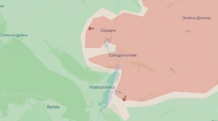 Аналітичний проєкт DeepState повідомив, що російські війська просунулися поблизу сіл Шандриголове та Свято-Покровське у Донецькій області.