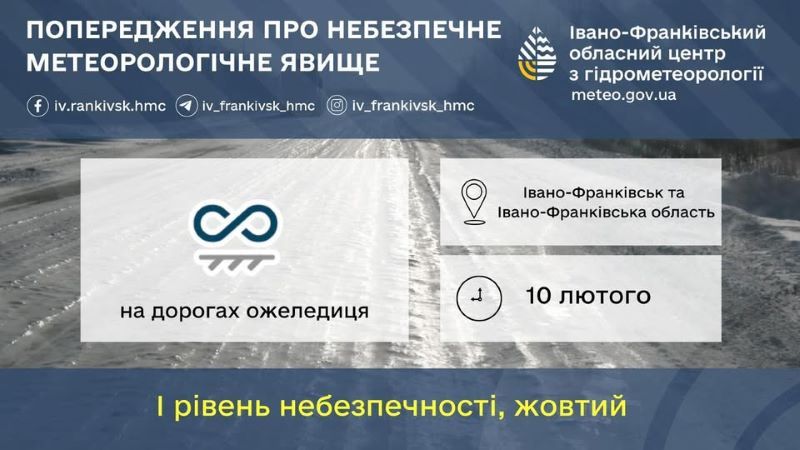 На Прикарпатті 10 лютого прогнозують ожеледицю.