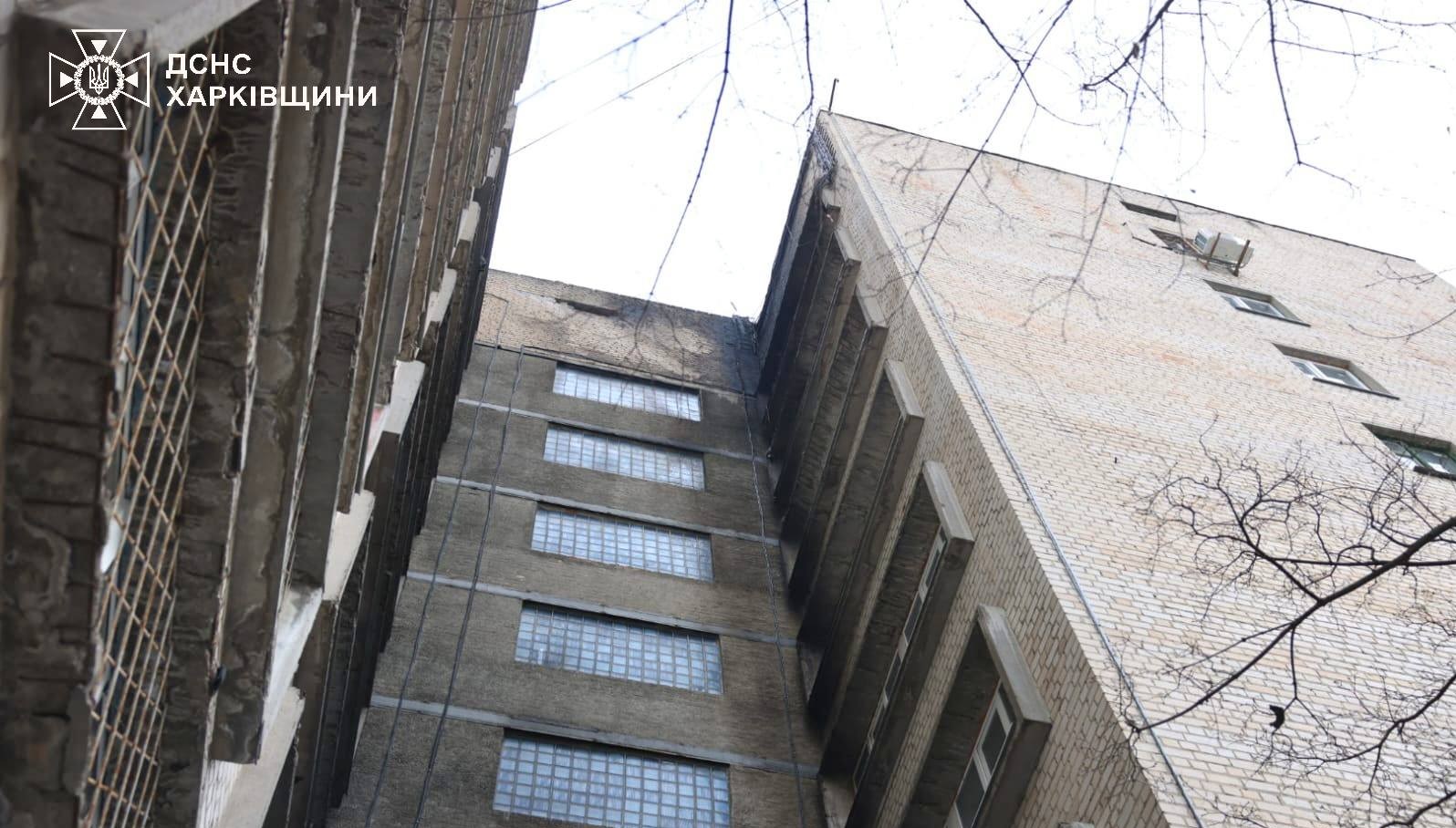 “В результаті одного з ударів сталося загоряння у 9-поверховій будівлі гуртожитку Шевченківського району Харкова. Горіли віконна рама на 9 поверсі, а також генератор та сміття на подвір’ї. Площа пожежі склала 10 м кв.”, – йдеться у повідомленні.