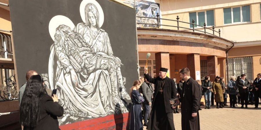 У центрі Івано-Франківська, біля Ратуші, триває експозиція унікального мистецького об’єкта “П’єта”. Робота авторства художника Андрія Єрмоленка присвячена пам’яті захисників, які віддали життя у російсько-українській війні. У створенні полотна також брали участь родини загиблих воїнів, волонтери та студенти.