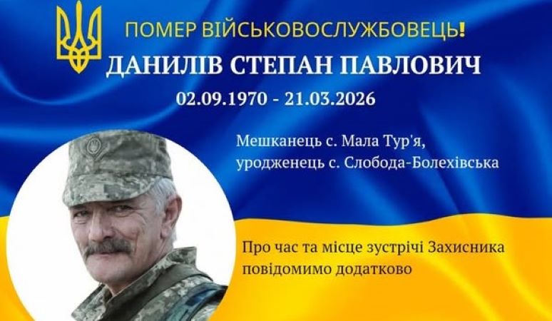 На 56-му році життя передчасно пішов із життя військовослужбовець Степан Данилів, уродженець села Слобода-Болехівська, який проживав у селі Мала Тур’я.