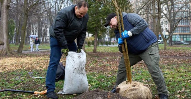 В Івано-Франківську міський голова разом із посадовцями очищали парки та посадили алею магнолій